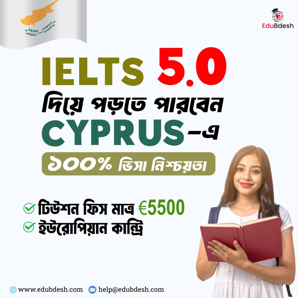 Are you dreaming of pursuing higher education in Europe but worried about high IELTS requirements? Good news! You can now study in Cyprus with just IELTS 5.0 and kickstart your international education journey with EduBdesh!